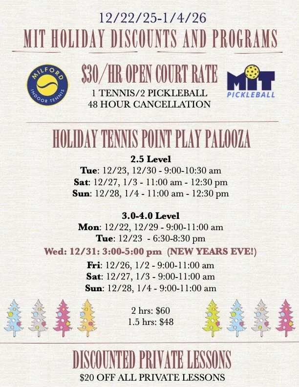 Check out our on court adult tennis/pickleball lessons including our week to week clinics.