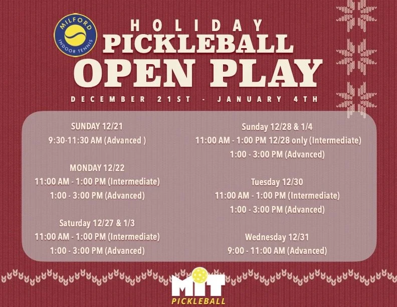New Weekly Pickleball Programs below!